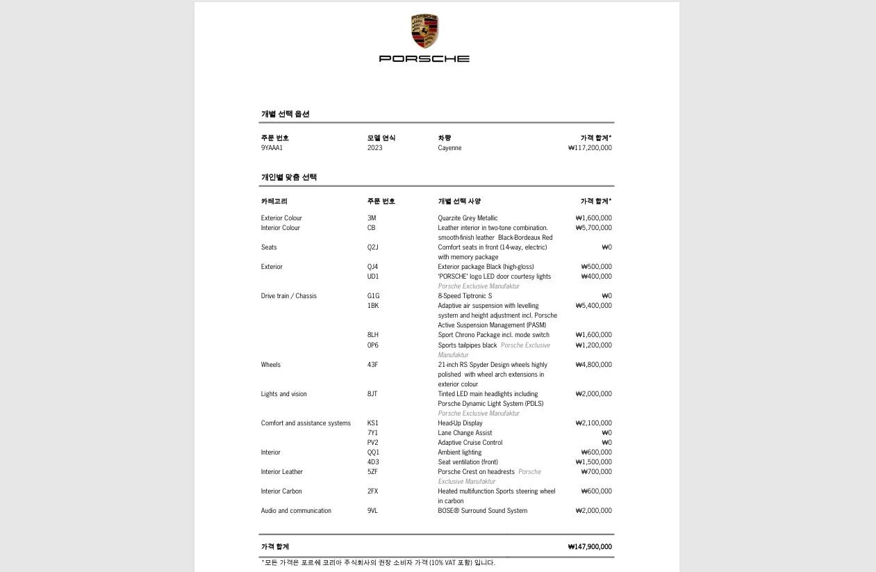 Porsche CAYENNE 3.0, 2022 г. 39173 км. 3.0 4WD AT (340 л.с.) автомат — под заказ из Кореи