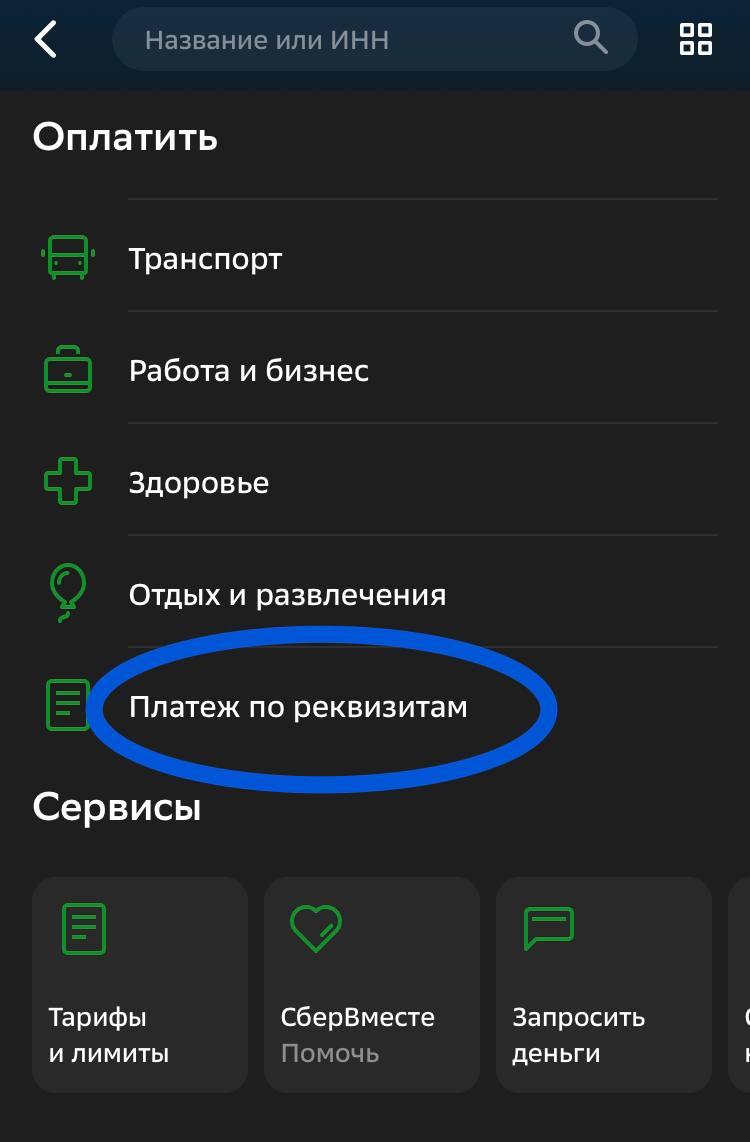 Пролистайте вниз и выберите опцию "Платеж по реквизитам".