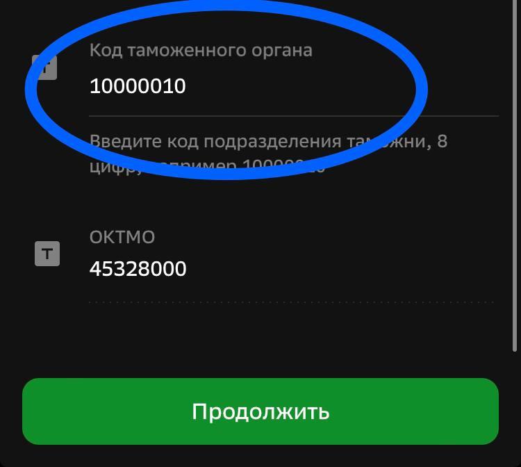 Введите Код таможенного органа: 10000010.